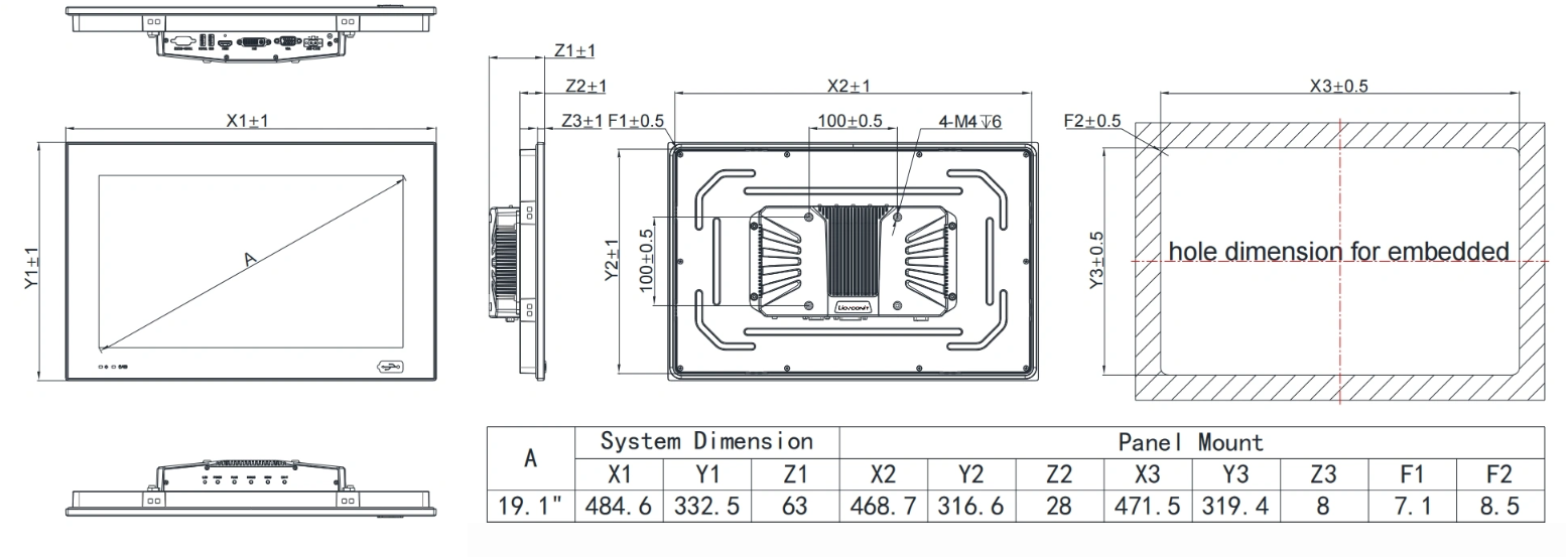 u 19英寸高亮工业级显示屏,前面板面膜可防止视觉疲劳